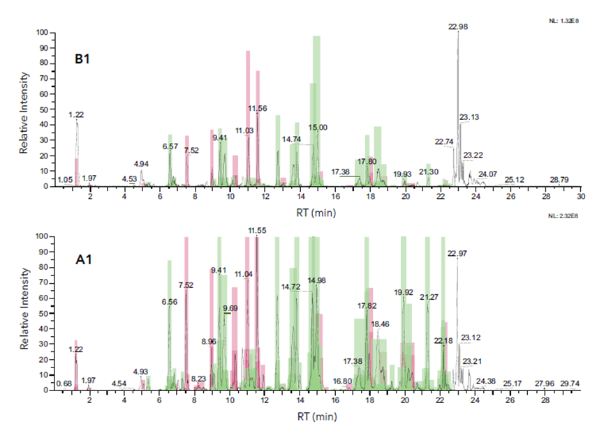 图4 B1和 A1组分的肽图分析