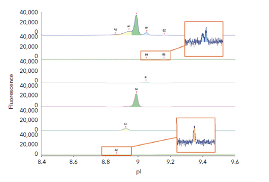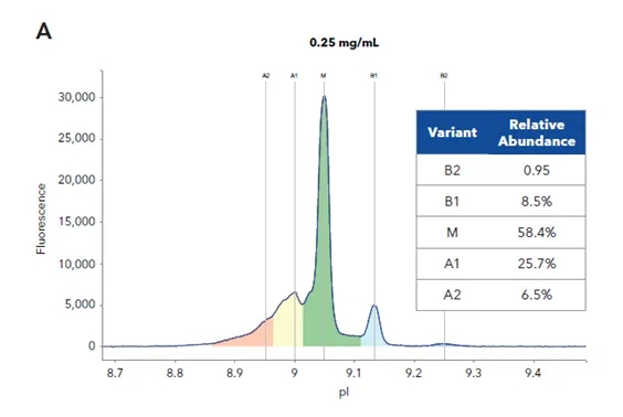 图2 Maurice™ icIEF分析型实验对组分的电荷变异体进行鉴定和纯度验证