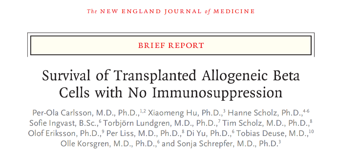 02. 右手The New England Journal of Medicine,胰岛移植不用免疫抑制!