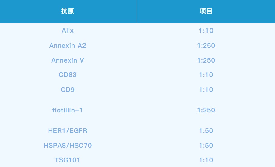 本篇文章介绍以“人血浆、人血清、人A549细胞(肺泡基底上皮腺癌细胞)”三种外泌体标准品为对象,验证下表中抗体的有效性的结果: