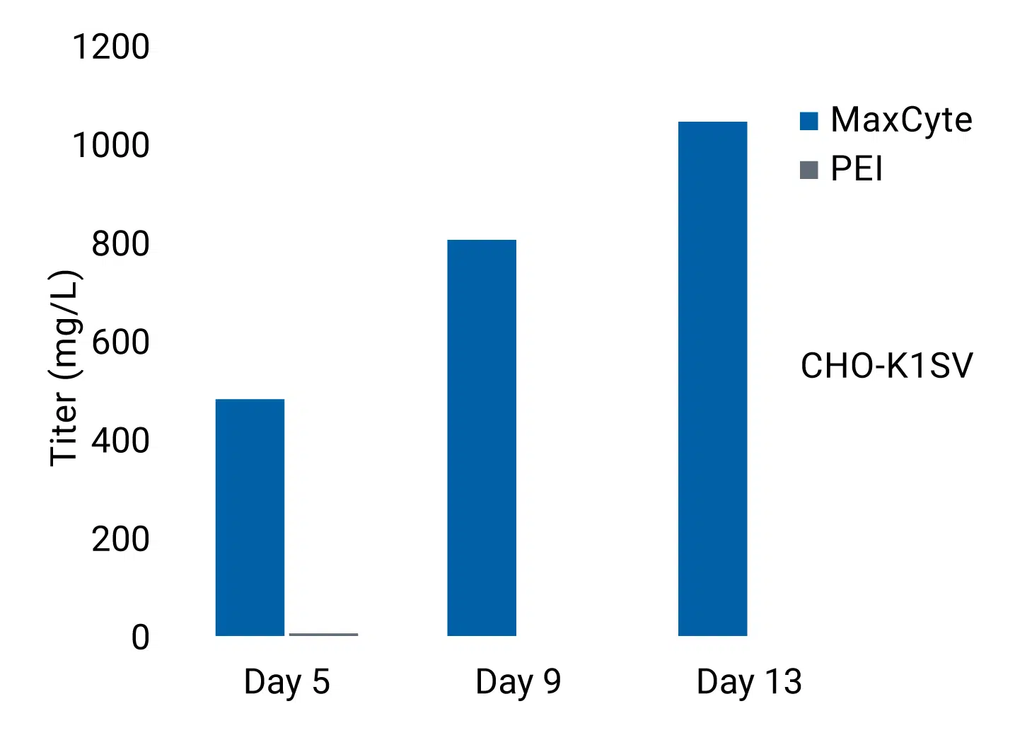 对 CHO-K1SV 细胞进行电穿孔后,可在两周内实现超过 1g/L 的抗体滴度。