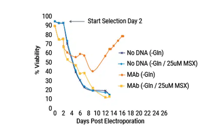 MaxCyte电穿孔后细胞存活率高,可在两天内启动筛选,加速稳定细胞株的开发进程。