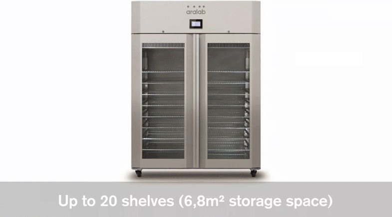 箱体内部可配置的不锈钢搁板多达20个,存储空间可达6.8平方米。