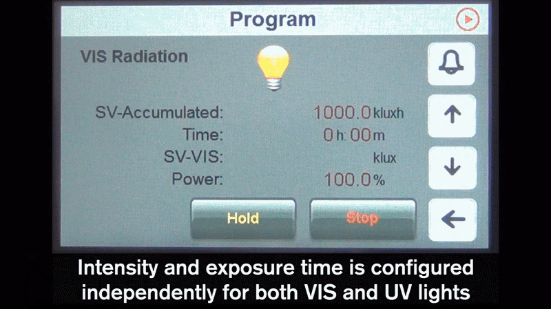 可见光和紫外光都可独立设置强度和曝光时间。