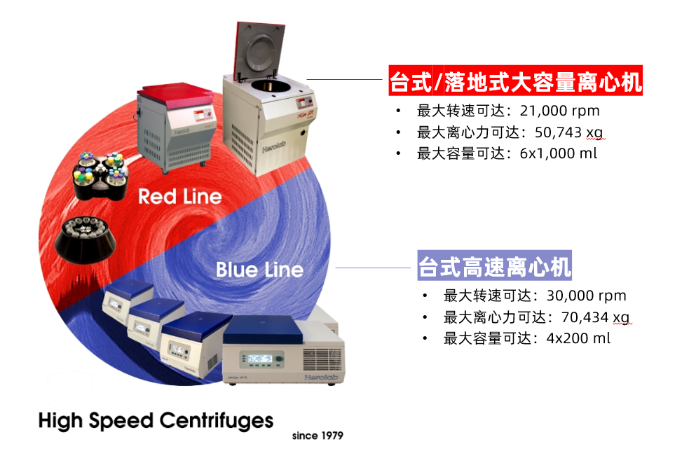 拥有红蓝双产品线,从微量到大容量,从台式到落地式,从常温到低温……多种规格型号的产品,每一款产品都匹配了工艺精湛且款式丰富的转子,无论是冷却分离技术,惰性气体保护、还是机器人离心机等等,都可以满足您的要求!