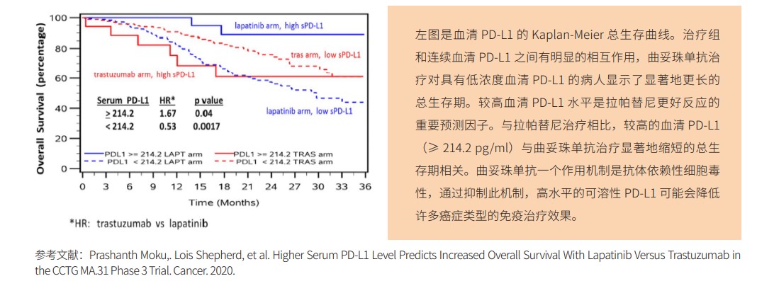 美国科学家进行一项针对 HER2 阳性的转移性乳腺癌回顾性生物标志物研究,评估预处理血清 PD-L1 水平作 为预后和预测性标志物使用价值。Ella PD-L1 实验具有宽动态范围(3.45-13,172 pg/mL),实现自动化快速检测, 本研究采用 Ella 检测血清中 PD-L1 水平。