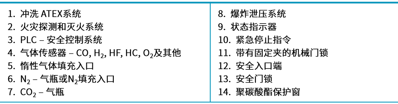 由于测试过程中的故障可能产生危险的结果, 基于不同的内部危险分析,TESTA BT系列测试箱可以配置多种安全装置,并符合EUCAR危险等级划分,为测试人员,测试样品,测试设备和实验室环境提供更好的保护。