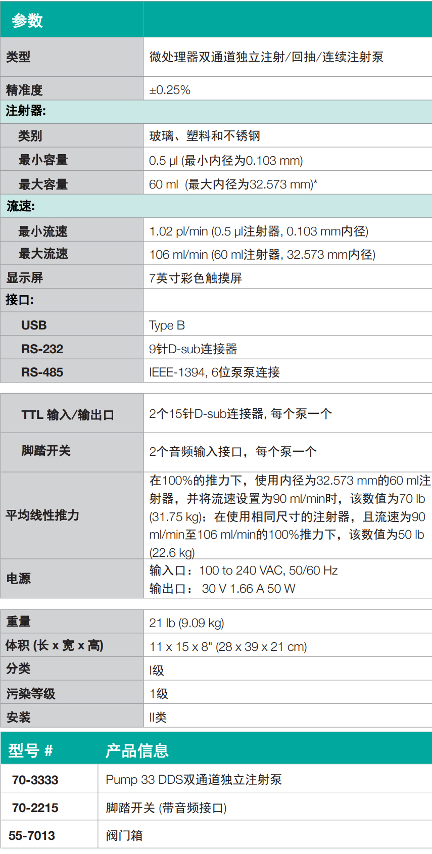 • 可用注射器范围:0.5u-60 ml