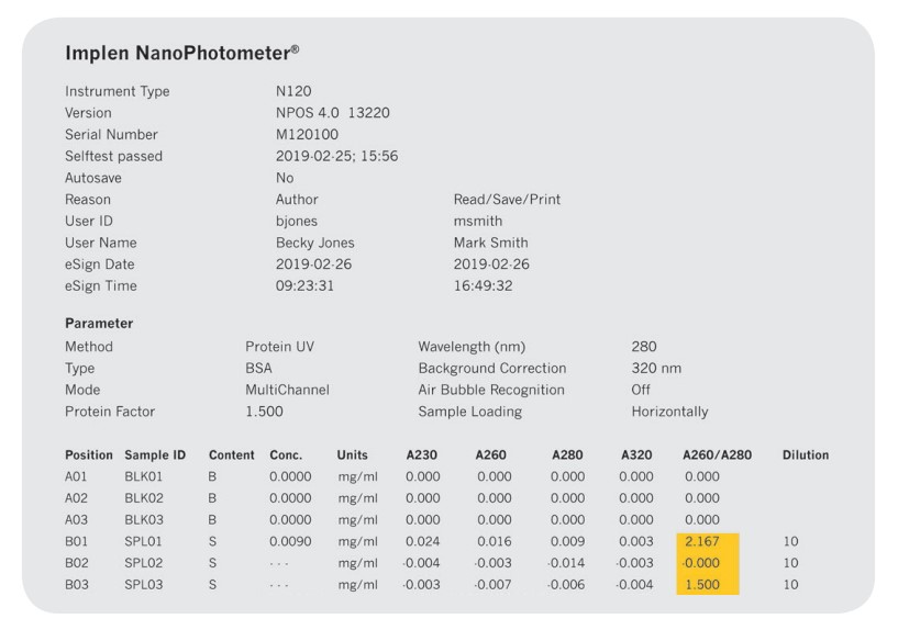 在宽浓度范围(dsDNA:2 - 8,000 ng/μl)内进行多达 12个样品的可靠测量。对比其他技术,NanoPhotometer® N120 提供值得信赖的260/280和260/230比值测量数据空白质量控制(Blank Control )和样品质量控制(Sample Control )技术监控着整个测量过程,可标记出不满足纯度 要求的样品数据。