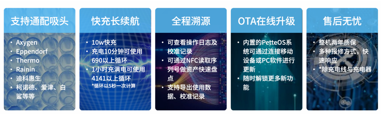 术也@Pette Pro智能移液器通过多种功能集成的方式帮助客户在液体处理场景下解决便捷性、精确性和可重复性问题。
