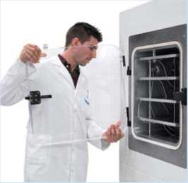 样品腔和层板与工业型冻干机采用相同的结构与材料。制造材质都为316L不锈钢且内部组件都设计的易于清洁。冷凝器也为316L不锈钢材质,配有电加热快速除霜装置。样品腔和冷凝器都配有透明亚克力材质门,便于观察整个冻干过程。