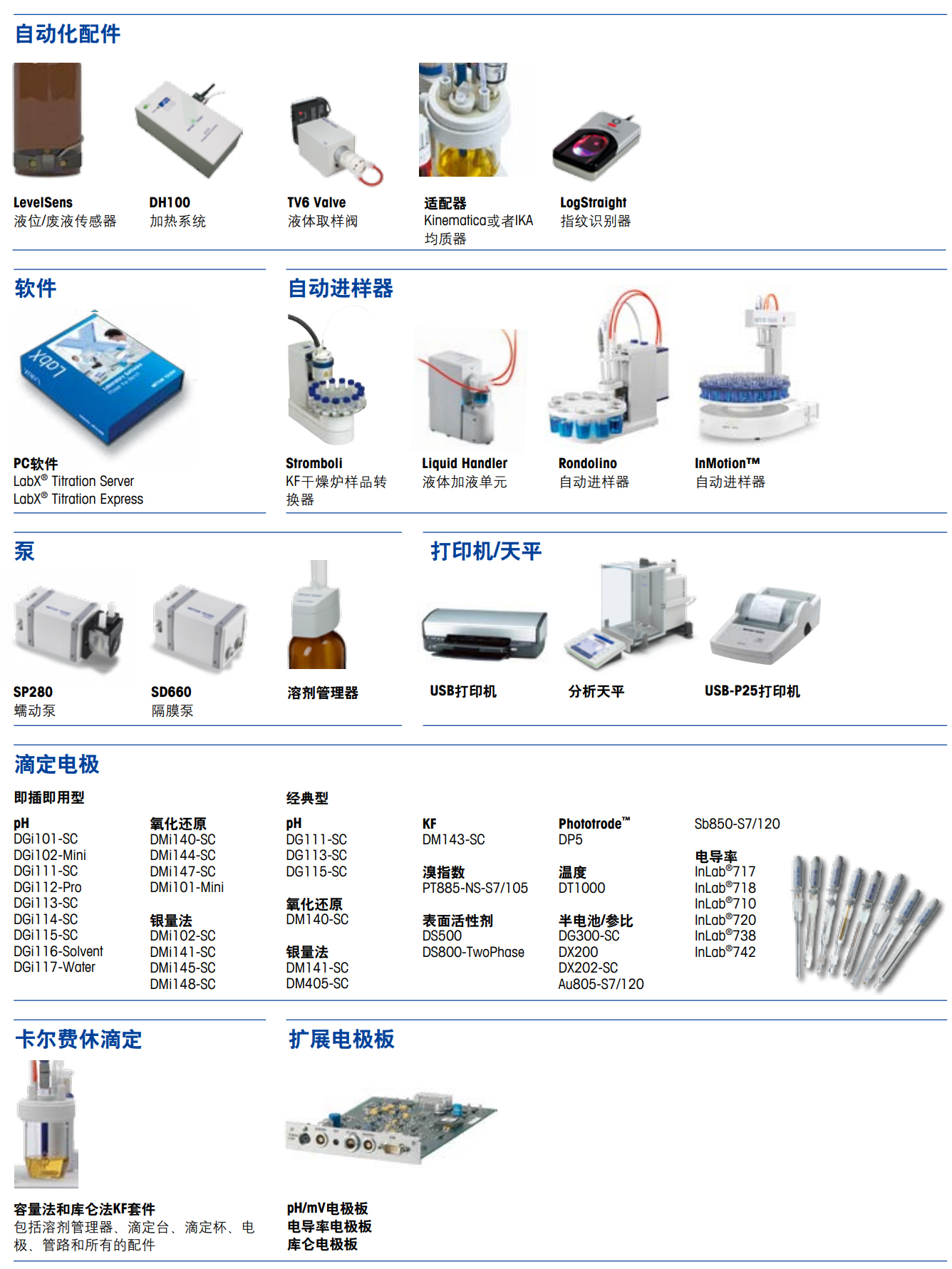 •  可扩展至多种应用,容量法或库仑法卡尔费休滴定、电导率滴定等等