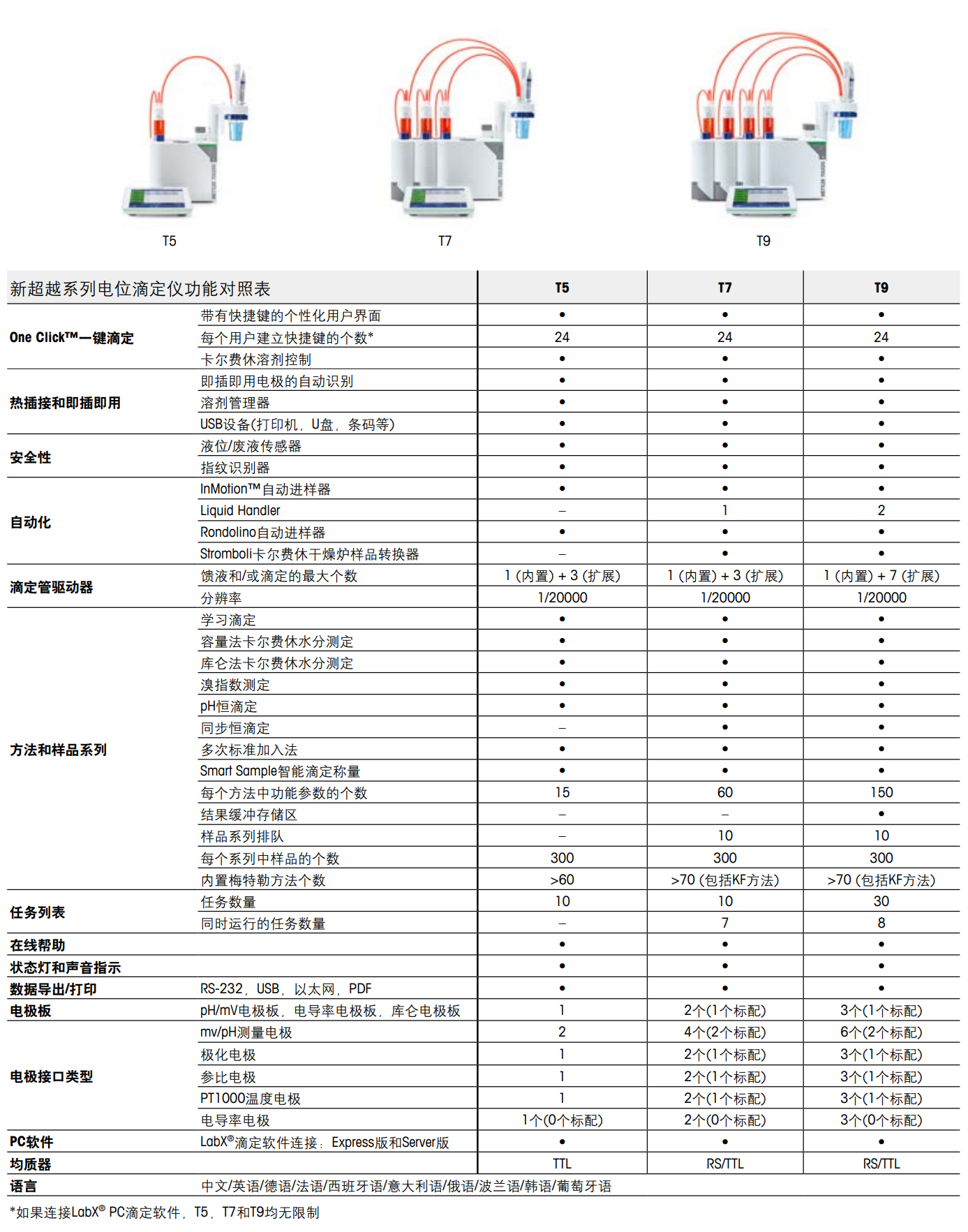 新超越系列电位滴定仪三个型号的仪器均基于相同的工作平台。这样可以很容易地把分析方法复制到其他型号的仪器中使用。